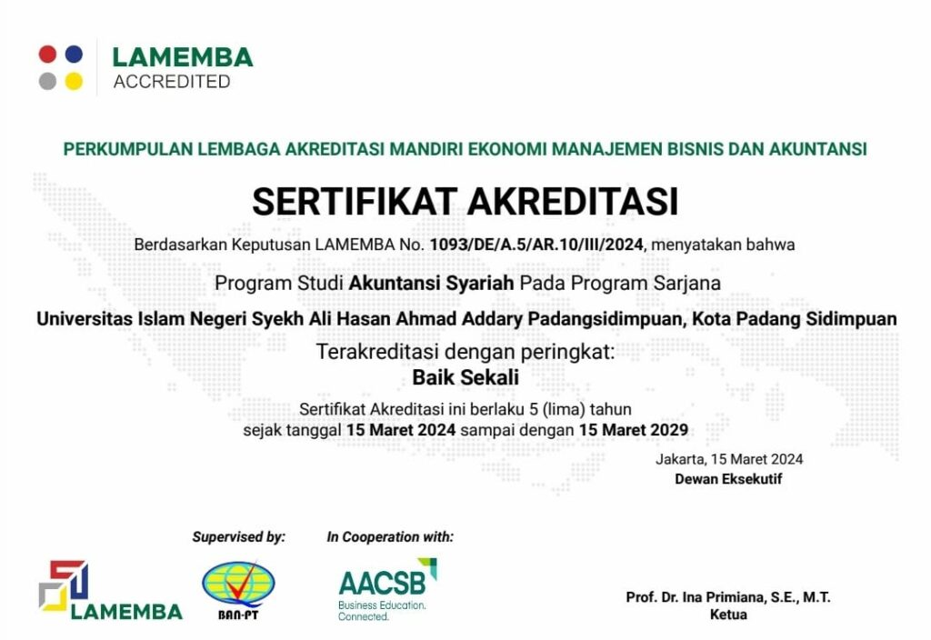 Sertifikat Akreditasi UIN SYAHADA Padangsidimpuan